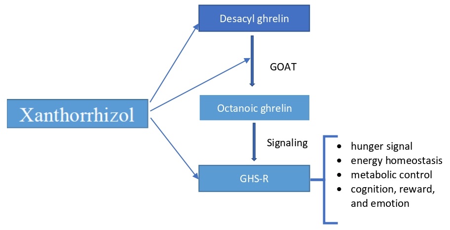 Molecular interaction between xanthorrhizol with ghrelin-o-acyl transferase (goat) and growth hormone SECRETAGOG3UE receptor (GHS-R): a docking analysis